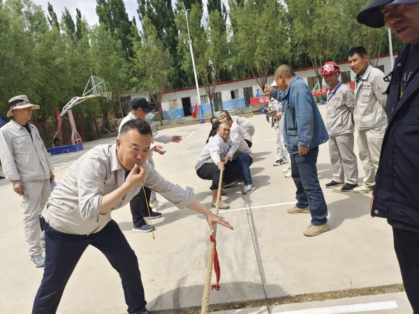 在拔河比賽現(xiàn)場,隨著裁判一聲令下,比賽迎來激動人心的時刻。比賽雙方隊員前腿瞪、后腿弓,凝神聚力,“一二,一二”的口號聲震耳欲聾,漲紅的臉頰、暴突的青筋,彰顯雙方激烈對峙,互不相讓的競技狀態(tài)。